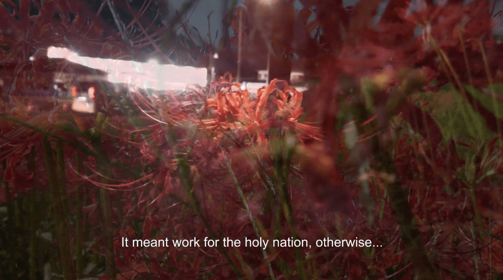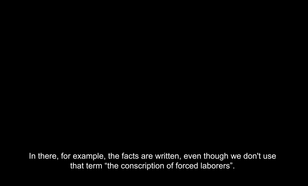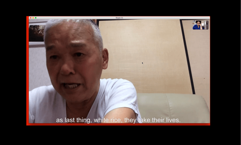 Below: Toshie Takeuchi, Screenshot of the interview video exhibited at Eks-Rummet Copenhagen, 2023