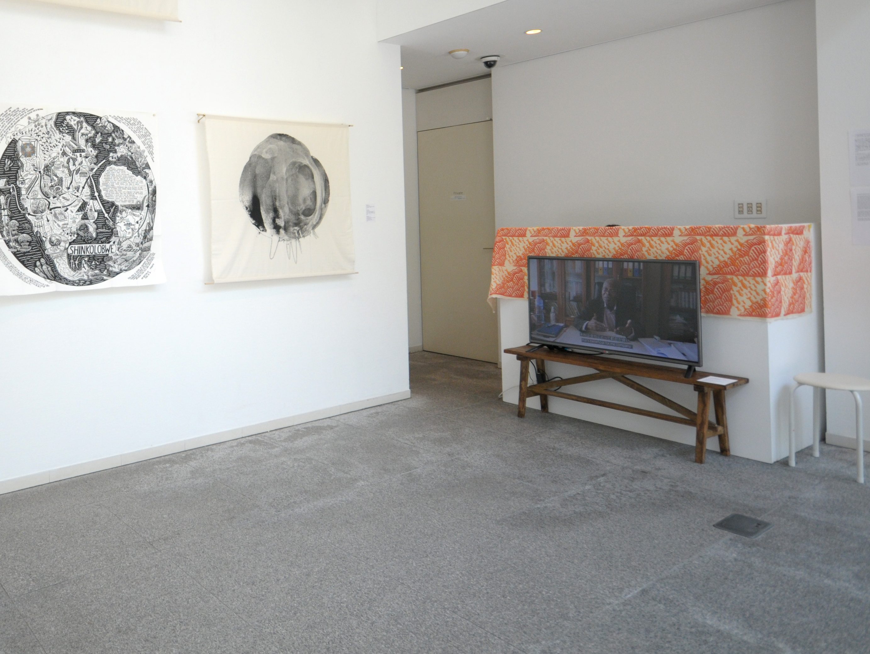 展示風景:Refuting the Soil 2.-シンコロブウェのウラン鉱石の放射能に導かれ、近代と平和の裏側をマッピングする-(第2版)、グループ展「シンコロブウェ:権力と記憶のはざま」、ギャラリーG、2025年7月29日ー8月10日、広島